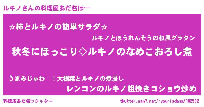 | 意味不明あだ名 | 『自称ルキノ』『めかぶ科ルキノ属』 |