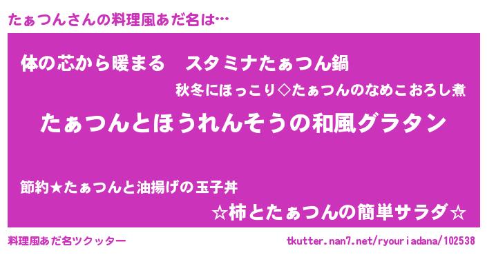 | 胡散臭い通販商品みたいなあだ名 | 『世界が平和になる高級そうな壺…その名も「たぁつん」』 |