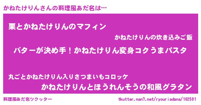 | 女子向けラノベタイトル風あだ名 | 『かねたけりん恋絵巻』 |