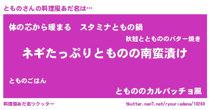 | 胡散臭い通販商品みたいなあだ名 | 『億万長者になれるブレスレット…その名も「ともの」』 |