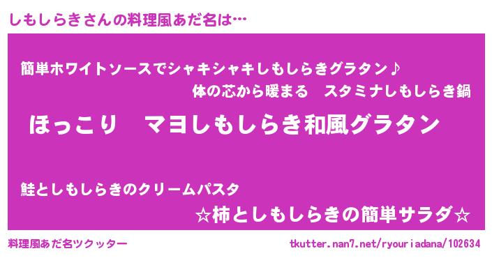 | 胡散臭い通販商品みたいなあだ名 | 『あなたにだけ特別に提供する限定10本のレアな日本酒…その名も「しもしらき」』 |