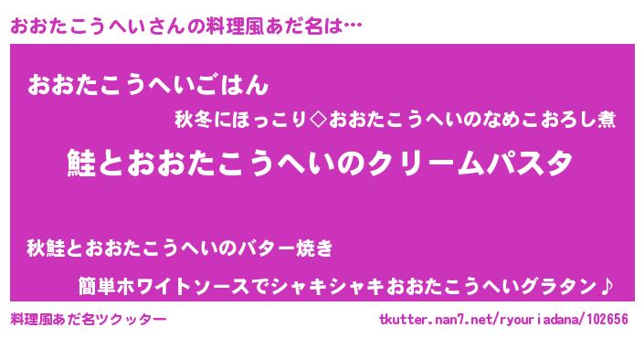 | 男性向けラノベタイトル風あだ名 | 『ノーゲーム・ノーオオタコウヘイ』 |