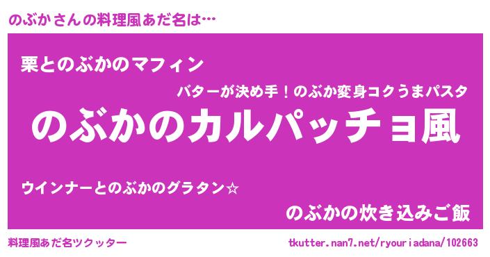 | 女子向けラノベタイトル風あだ名 | 『のぶかが死なない童話 林檎ののぶかの診療簿』 |