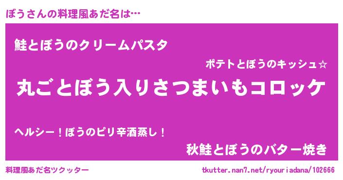 | ヘコむあだ名 | 『ぼう(笑)』『ぼうぷりん』『豆乳』 |