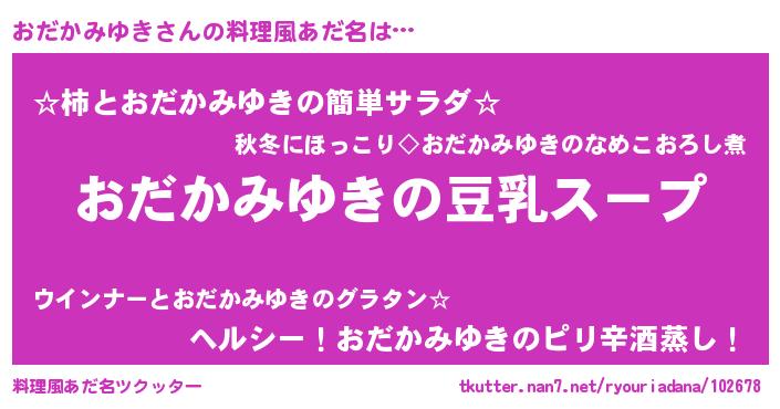 | 胡散臭い通販商品みたいなあだ名 | 『信頼と実績のサプリメント…その名も「おだかみゆき」』 |