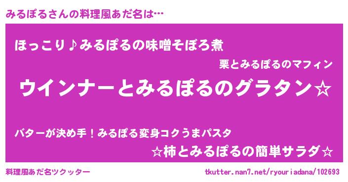 | 女子向けラノベタイトル風あだ名 | 『みるぽる伯爵の花嫁』『みるぽる恋絵巻』 |