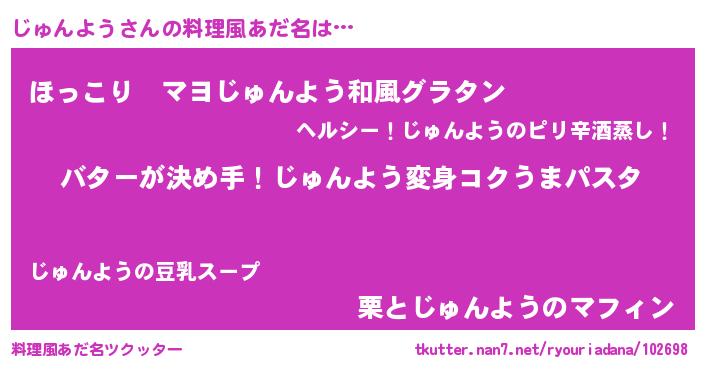 | 女子向けラノベタイトル風あだ名 | 『じゅんよう恋絵巻』『闇のじゅんよう』 |