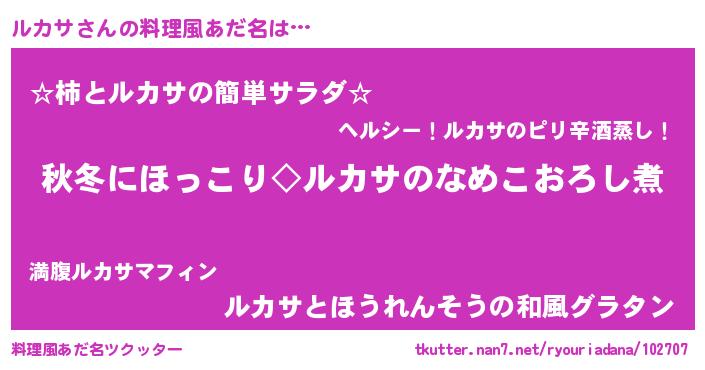 | ヘコむあだ名 | 『ルカサ(笑)』『牛乳』『ルカにー』 |