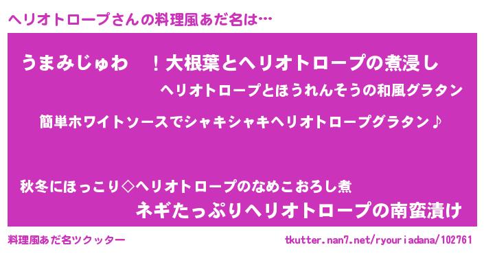 | 男性向けラノベタイトル風あだ名 | 『ヘリオトロープの嫁は女の子じゃないと思った?』 |