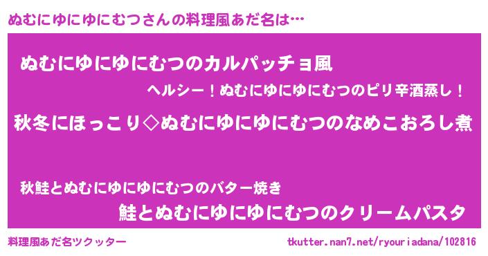 | 意味不明あだ名 | 『住所不定無職ぬむにゆにゆにむつ(81歳)』 |