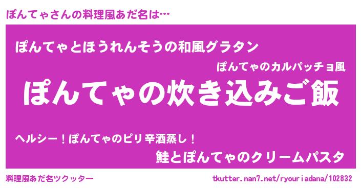 | 意味不明あだ名 | 『ニラ科ぽんてゃ属』『自称ぽんてゃ』 |