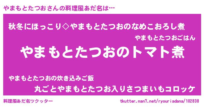 | 女子向けラノベタイトル風あだ名 | 『やまもとたつお夫妻のなれそめ』 |