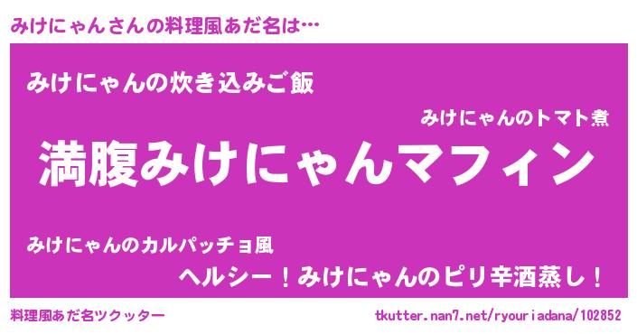 | ヘコむあだ名 | 『みけにゃん(苦笑)』『みけ太郎』 |
