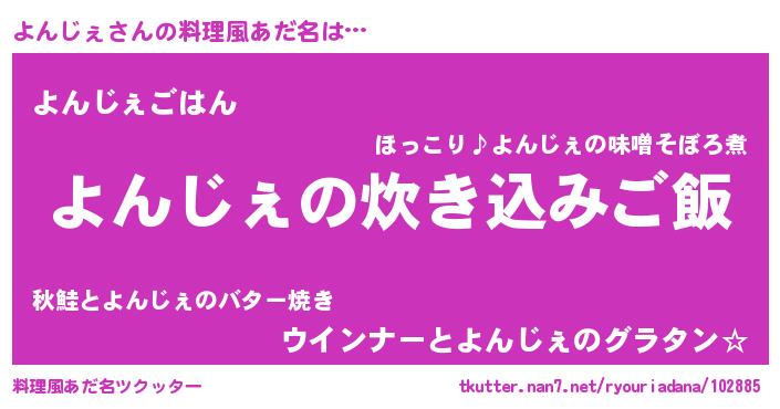 | 意味不明あだ名 | 『ニラ科よんじぇ属』『ペロリンよんじぇ』 |