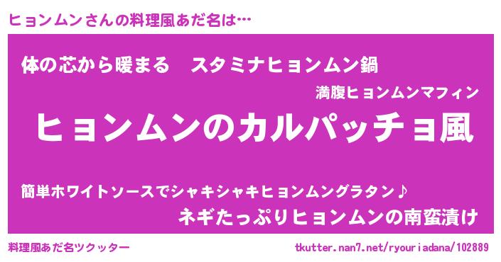 | 意味不明あだ名 | 『住所不定無職ヒョンムン(41歳)』 |
