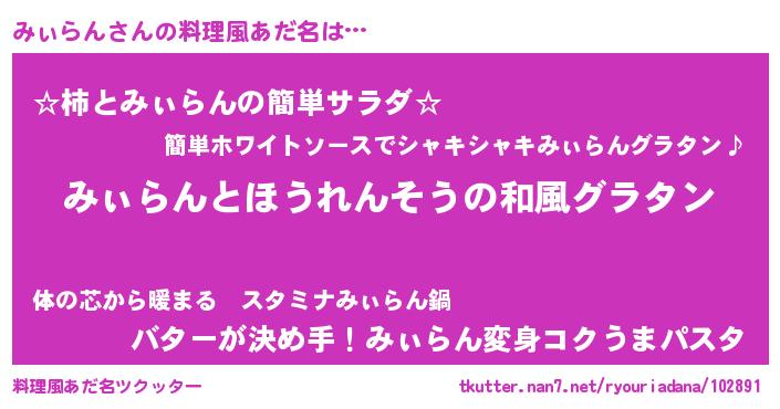 | ヘコむあだ名 | 『みぃを』『牛乳』『みぃふぇ~』 |