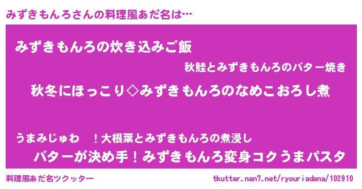| ヘコむあだ名 | 『みずきもんろ(小並感)』『なまこ酢』 |