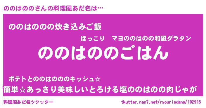 | 胡散臭い通販商品みたいなあだ名 | 『絶対に幸福をもたらす健康食品…その名も「ののはのの」』 |