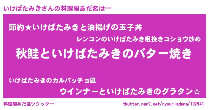 | 胡散臭い通販商品みたいなあだ名 | 『来世でも幸せになれる健康食品…その名も「いけばたみき」』 |