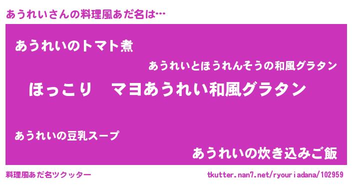 | 男性向けラノベタイトル風あだ名 | 『この素晴らしい世界にあうれいを!』 |
