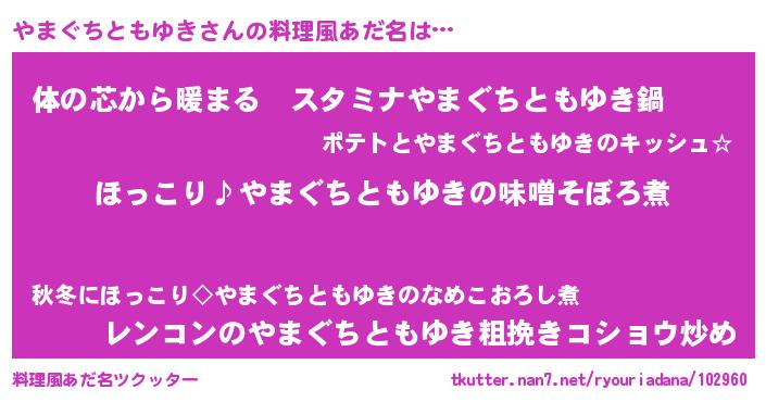 | 女子向けラノベタイトル風あだ名 | 『(仮)やまぐちともゆきのやんごとなき事情』 |
