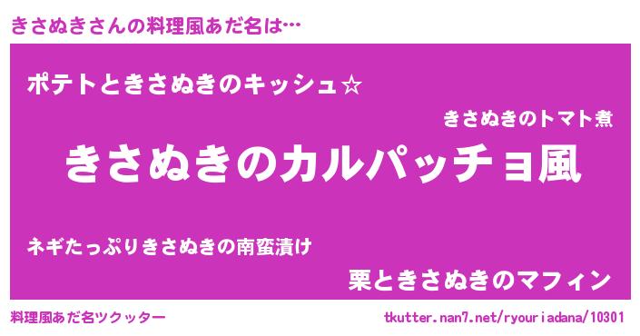 | 女子向けラノベタイトル風あだ名 | 『きさぬきが死なない童話 林檎のきさぬきの診療簿』 |