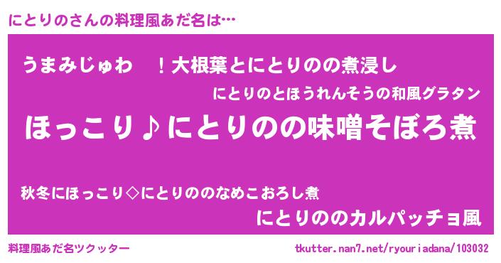 | ポケモン風あだ名 | 『ニトチュウ』『ニトリダネ』 |