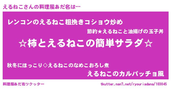 | 意味不明あだ名 | 『自称えるねこ』『ペロリンえるねこ』 |
