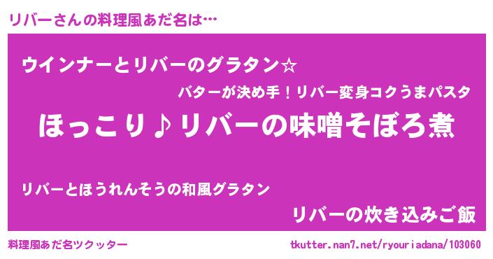 | ヘコむあだ名 | 『リバにー』『つくし』『リバお』 |