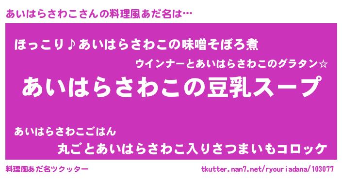 | 意味不明あだ名 | 『とにかく怪しいあいはらさわこ』 |