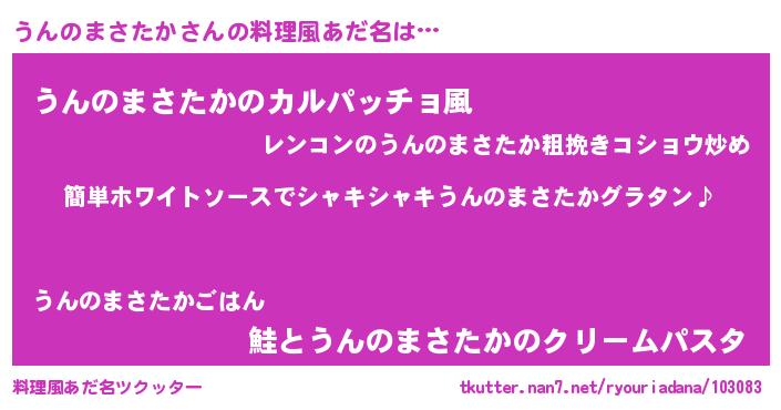 | 男性向けラノベタイトル風あだ名 | 『うんのまさたかの嫁は女の子じゃないと思った?』 |