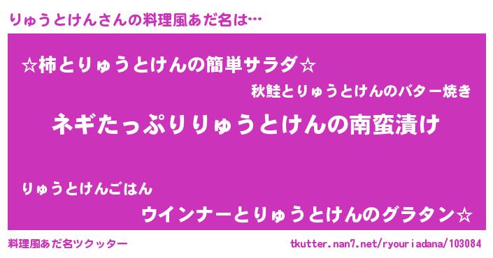 | 男性向けラノベタイトル風あだ名 | 『リュウトケンアートオンライン』 |