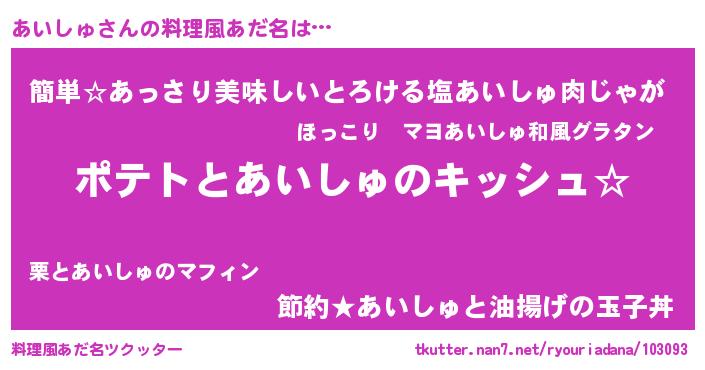 | 胡散臭い通販商品みたいなあだ名 | 『伝統あるサプリメント…その名も「あいしゅ」』 |