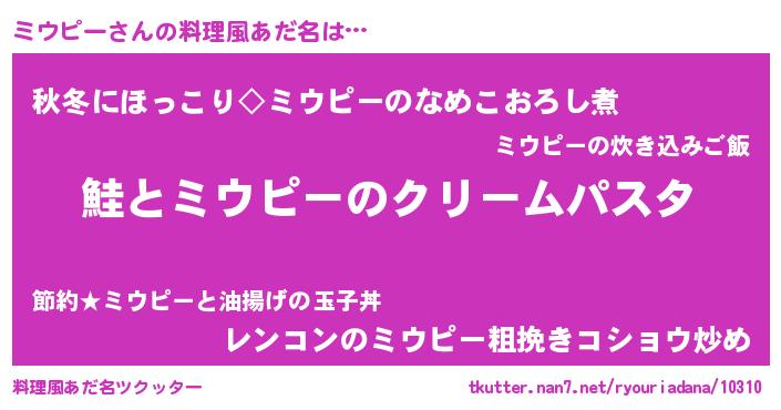 | 女子向けラノベタイトル風あだ名 | 『死神ミウピーの再婚』 |