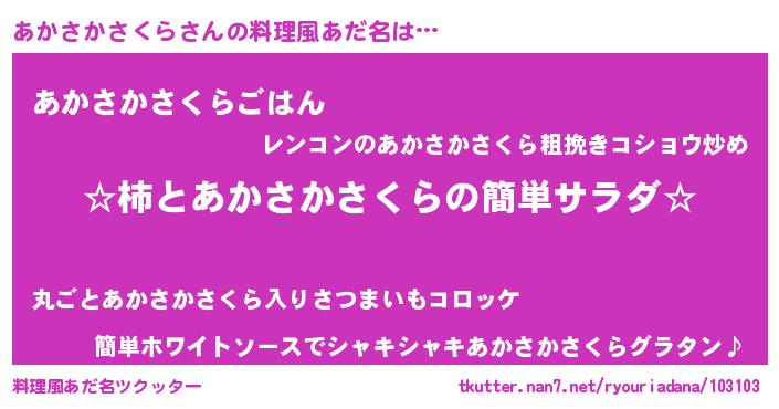 | 男性向けラノベタイトル風あだ名 | 『緋弾のアカサカサクラ』 |