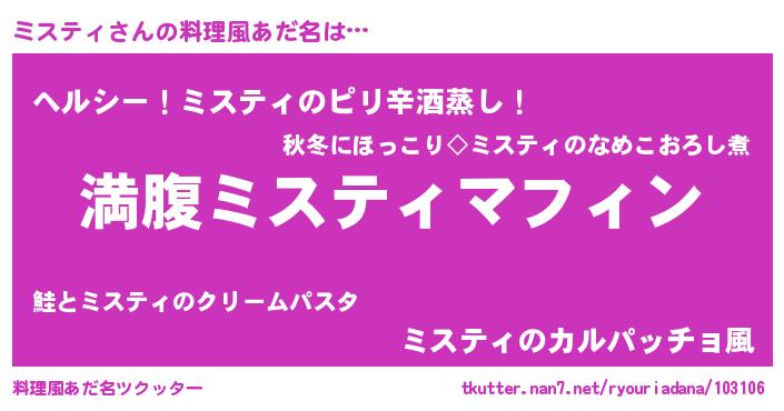 | 女子向けラノベタイトル風あだ名 | 『異世界で失敗しない100のミスティ』 |
