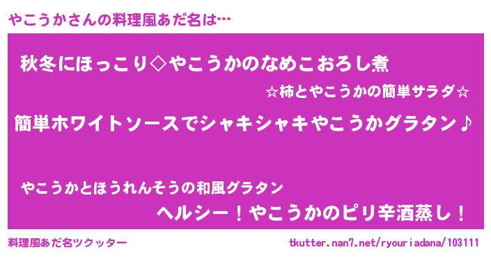 | 女子向けラノベタイトル風あだ名 | 『やこうか様がみてる』『闇のやこうか』 |