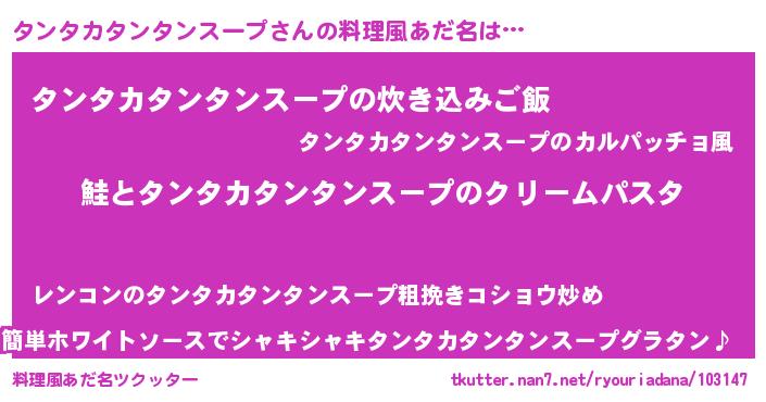 | 男性向けラノベタイトル風あだ名 | 『ノーゲーム・ノータンタカタンタンスープ』 |