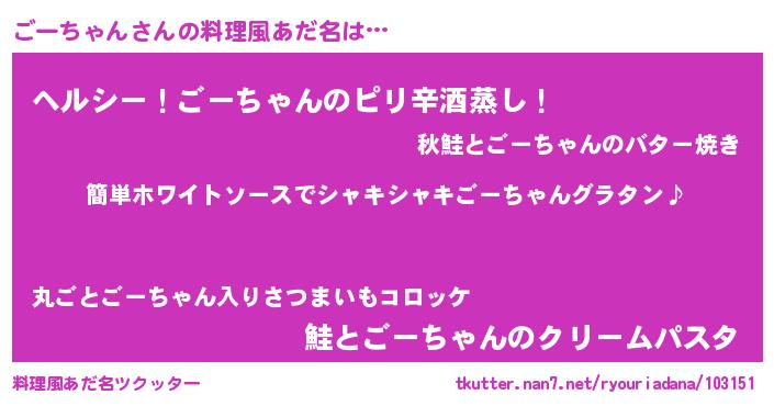 | 胡散臭い通販商品みたいなあだ名 | 『全米が絶賛したサプリメント…その名も「ごーちゃん」』 |