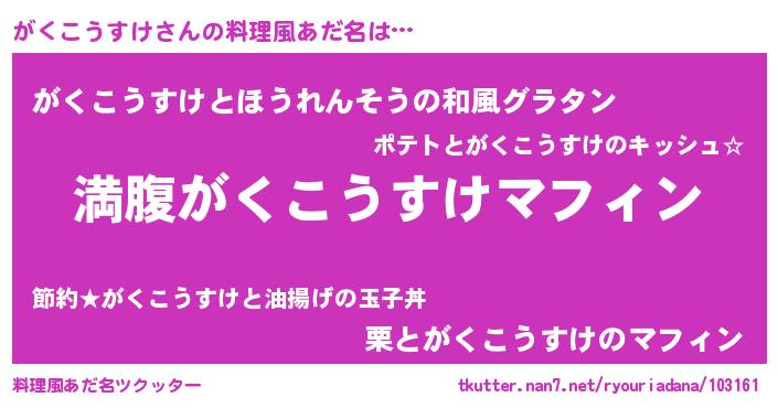 | ヘコむあだ名 | 『がくこうすけ(笑)』『がくぷりん』 |