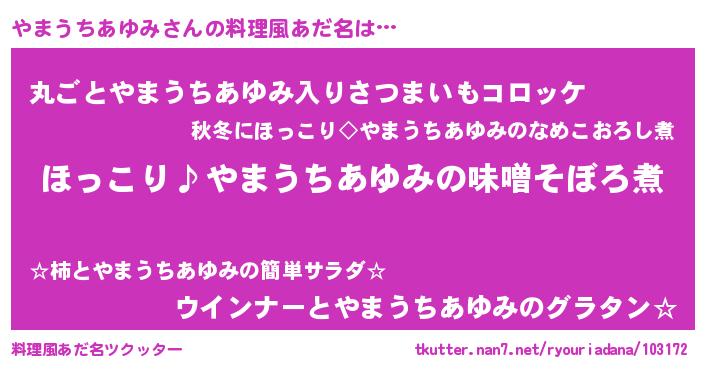 | 恥ずかしいあだ名 | 『プリティーやまうちあゆみ』『やまちん』 |