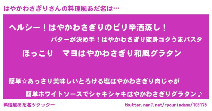 | 意味不明あだ名 | 『住所不定無職はやかわさぎり(56歳)』 |