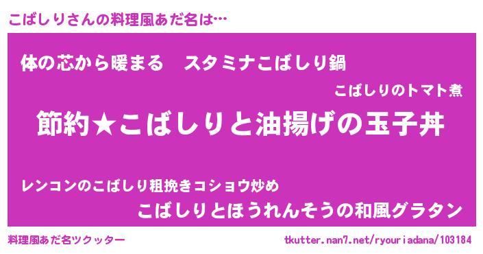 | 女子向けラノベタイトル風あだ名 | 『こばしり姫と円卓の騎士』 |