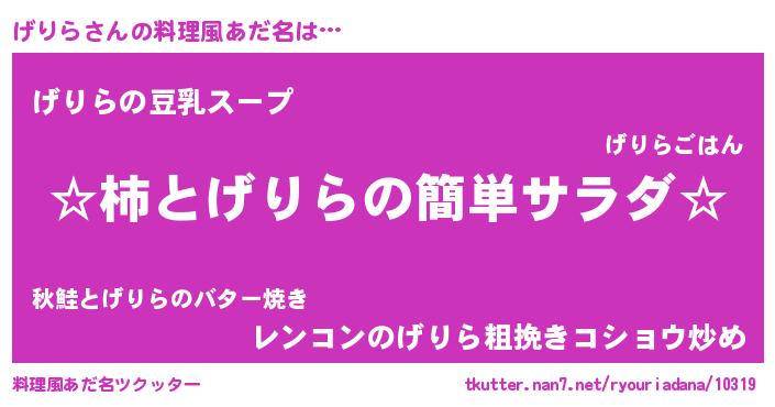 | 胡散臭い通販商品みたいなあだ名 | 『信頼と実績のサプリメント…その名も「げりら」』 |
