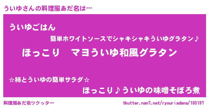 | 男性向けラノベタイトル風あだ名 | 『この素晴らしい世界にういゆを!』 |
