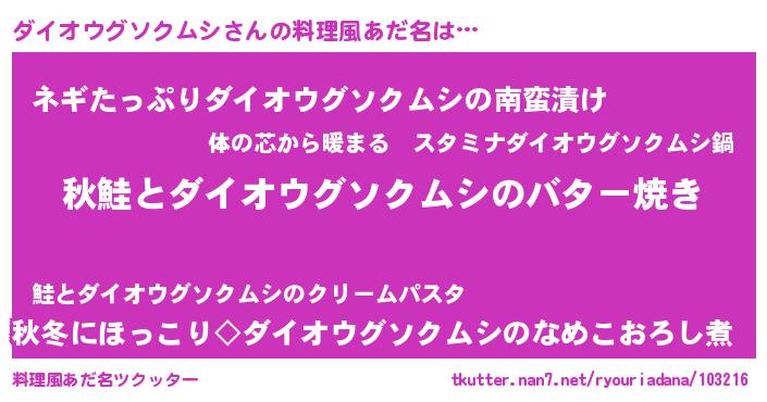 | ヘコむあだ名 | 『ダイオウグソクムシ(爆)』『ダイもー』 |