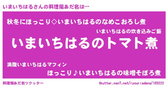 | 女子向けラノベタイトル風あだ名 | 『いまいちはる夫妻のなれそめ』 |