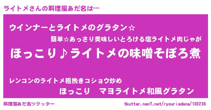 | 意味不明あだ名 | 『ペロリンライトメ』『永久保存ライトメ』 |