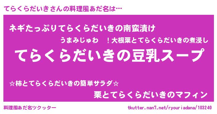 | 意味不明あだ名 | 『とにかく怪しいてらくらだいき』 |