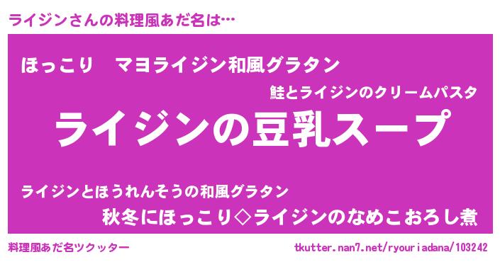 | 男性向けラノベタイトル風あだ名 | 『ダンジョンにライジンを求めるのは間違っているだろうか』 |